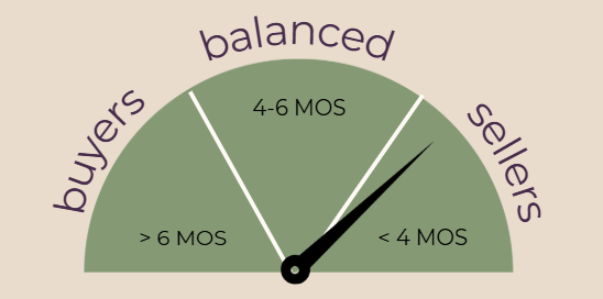 Months of Inventory is the number of months that it would take to sell all of the homes currently on the market at the current rate of sales if no more homes were listed for sale.