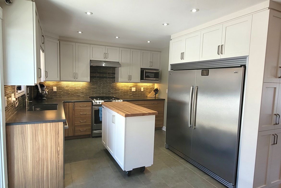 The kitchen was fully renovated in 2025 and features stainless steel appliances (gas stove, side by side fridge / freezer, and dishwasher), a movable centre island, and lots of cupboards. The dining area boasts a wall of cupboards, a coffee nook, and access to the rear patio / yard. Relax in your living room or head down the hall to find three good sized bedrooms, the 5-piece main bathroom, and plenty of closet space.