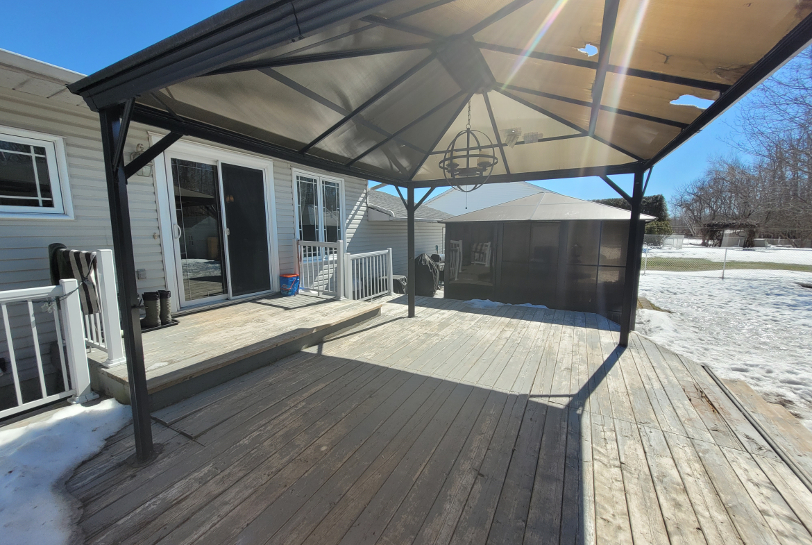 Downstairs youāll find a huge rec room with a gas fireplace, 4th bedroom, second full bathroom, laundry room, plus lots of storage. Double garage with access to the fully-fenced rear yard. The yard is huge, and has two garden sheds, and a patio area with a gazebo. This home has town water and is on septic and is a carpet free home.