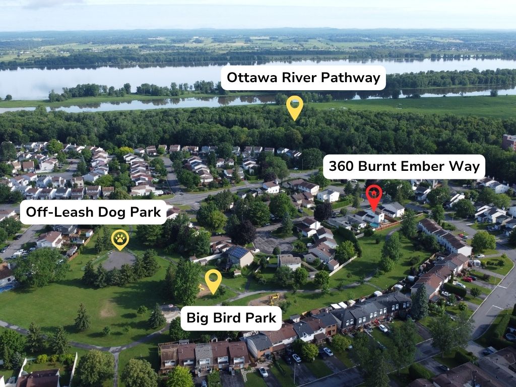 Enjoy the quiet family-friendly street and parks/playground out your back gate. Or, take a short walk to the Ottawa River Pathway where you can bike, walk, or run or ski for miles (skiing in the winter, of course). It’s only 4km by trail to Petrie Island Park/Beach. Plus, you’ve got easy access for transportation to downtown (Hwy 174, Trim Park & Ride, future LRT).