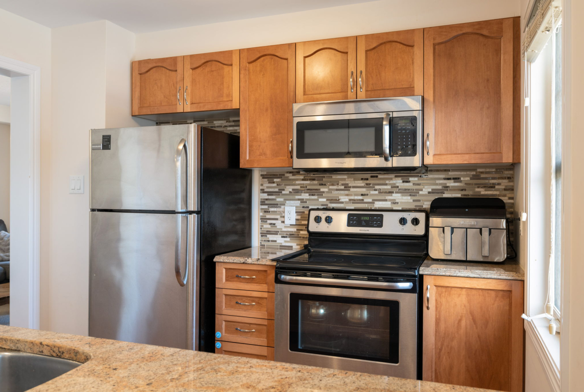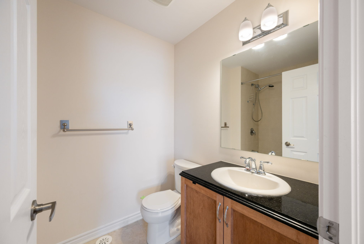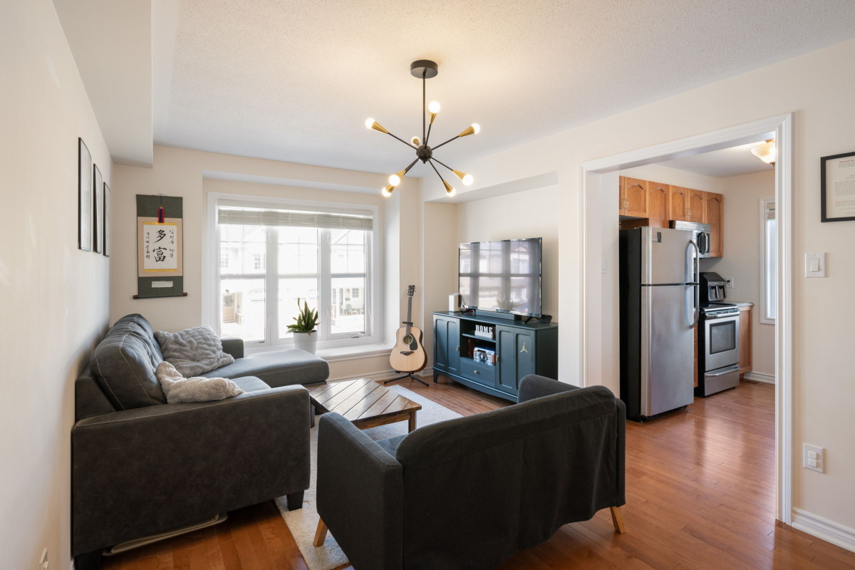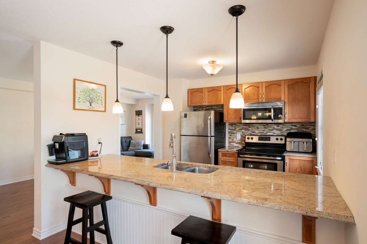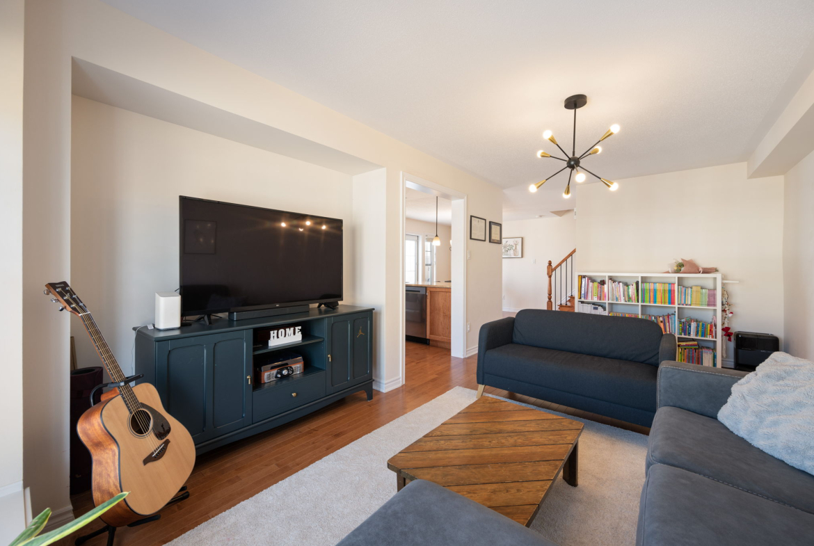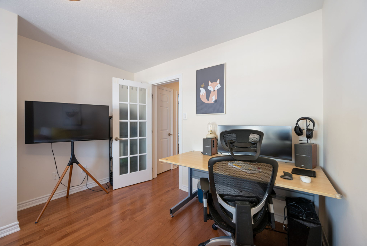 Enjoy a morning coffee or hook up your natural gas BBQ on your east-facing balcony. The living room is large enough to also accommodate an office area (now used for the kids bookshelves and play area). Also on this level is a 2 piece bathroom.