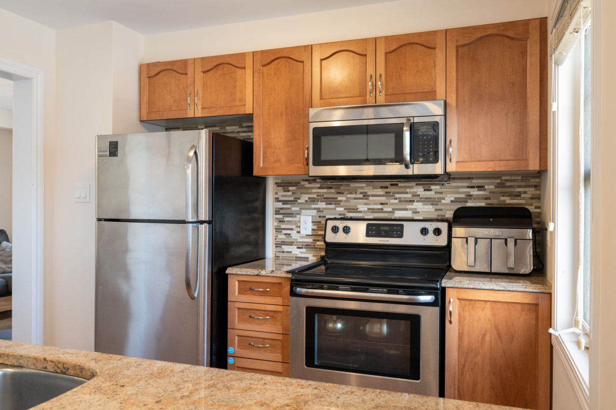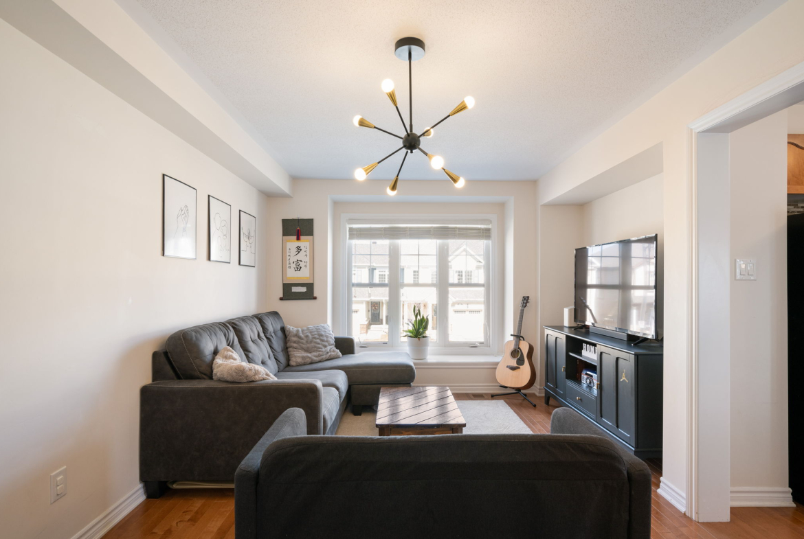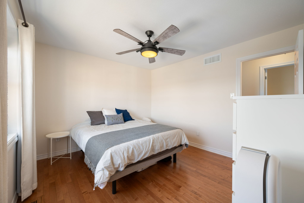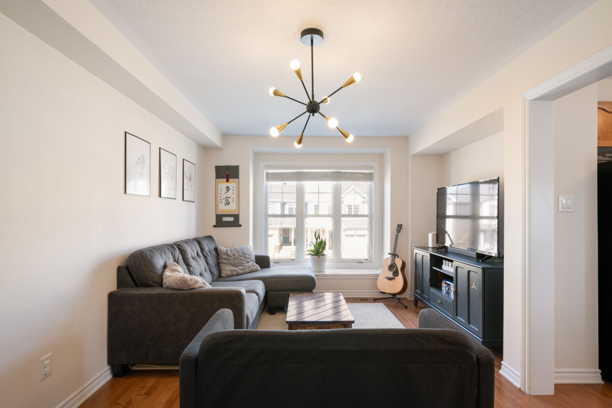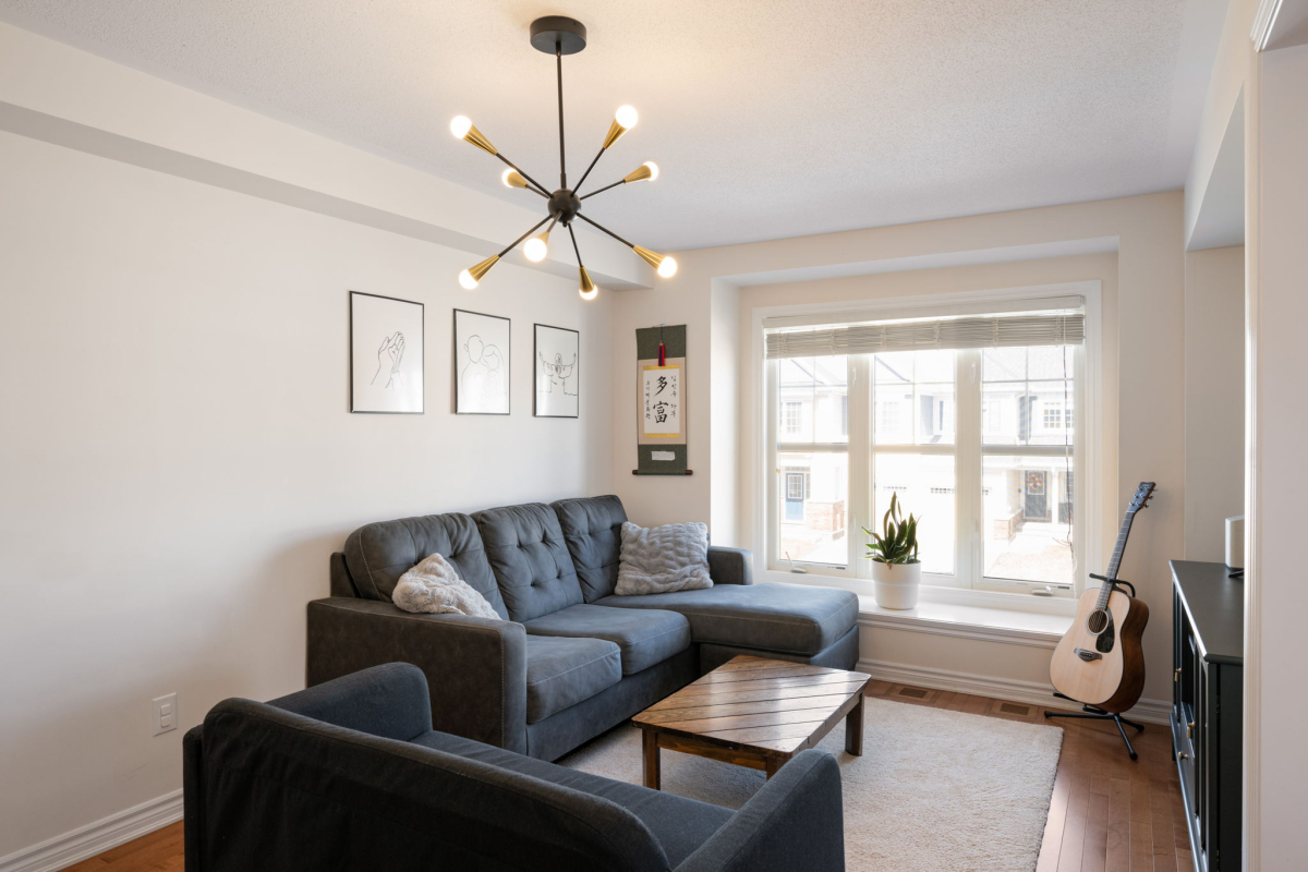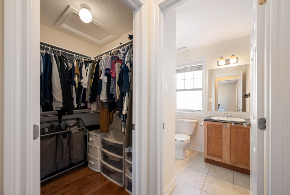 Enjoy a morning coffee or hook up your natural gas BBQ on your east-facing balcony. The living room is large enough to also accommodate an office area (now used for the kids bookshelves and play area). Also on this level is a 2 piece bathroom.