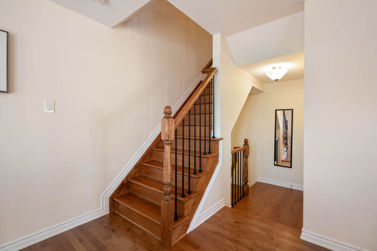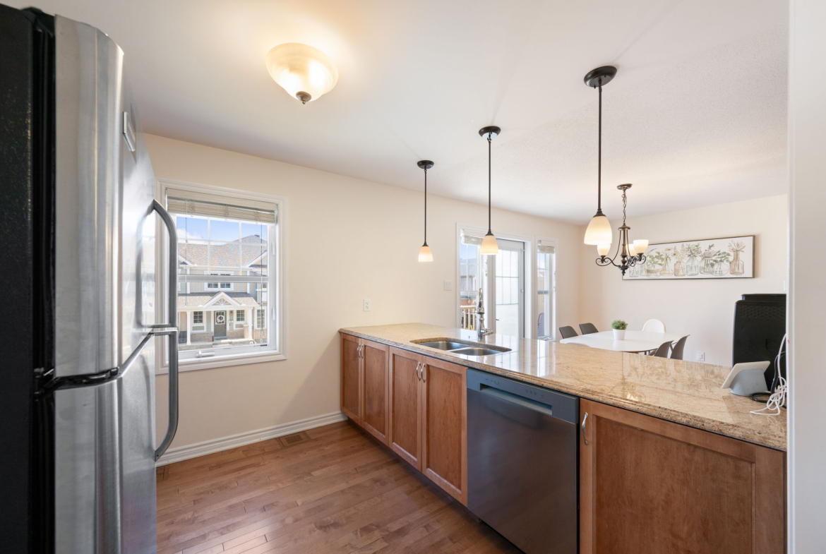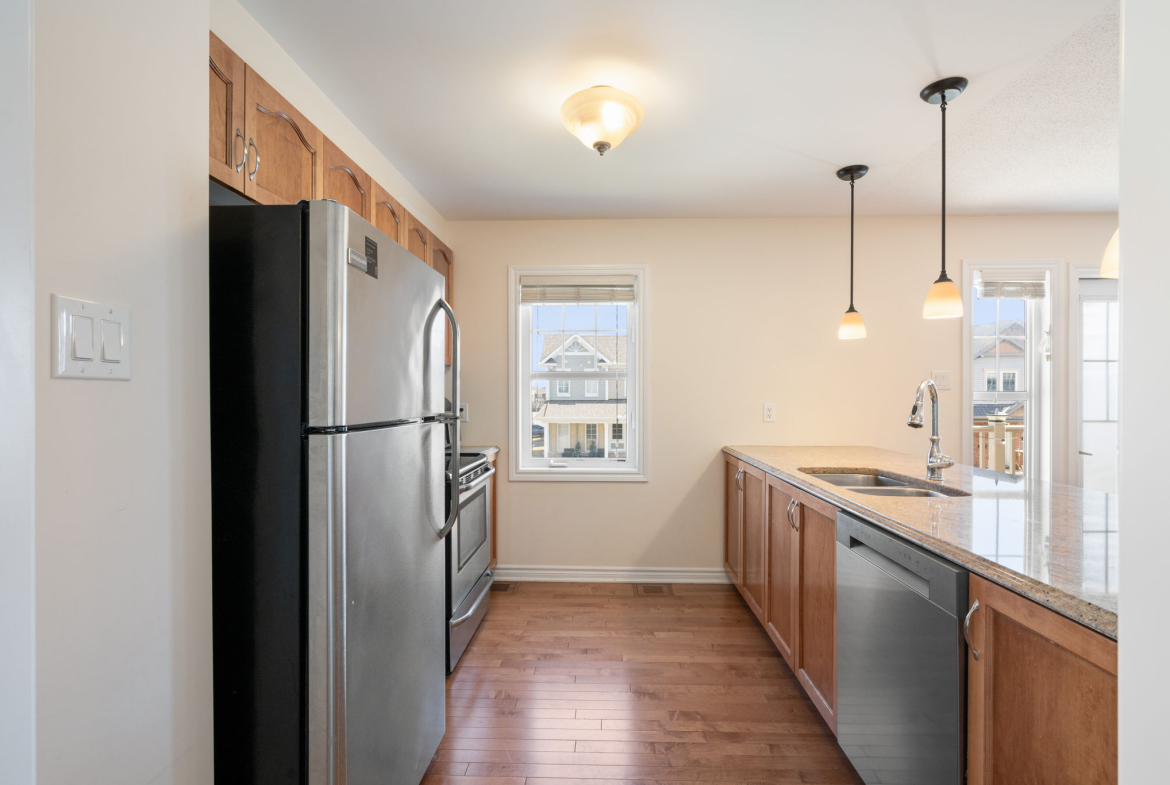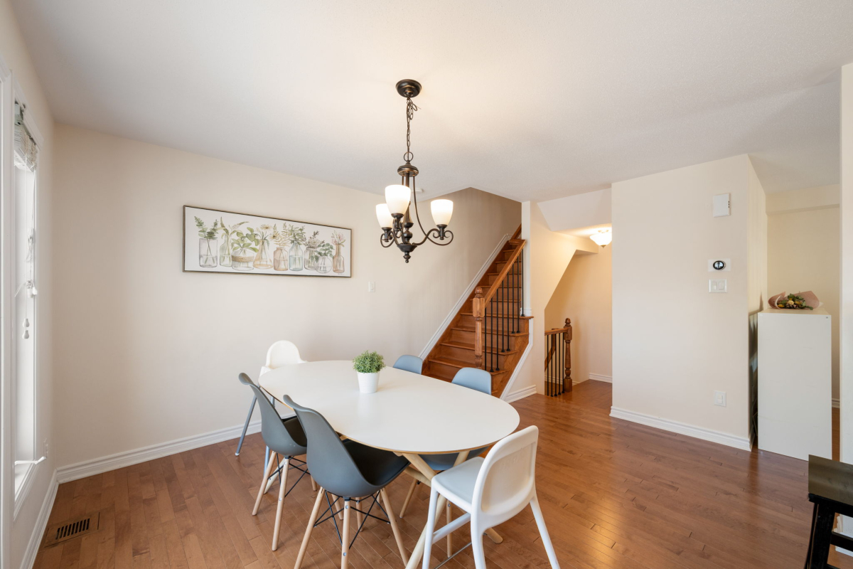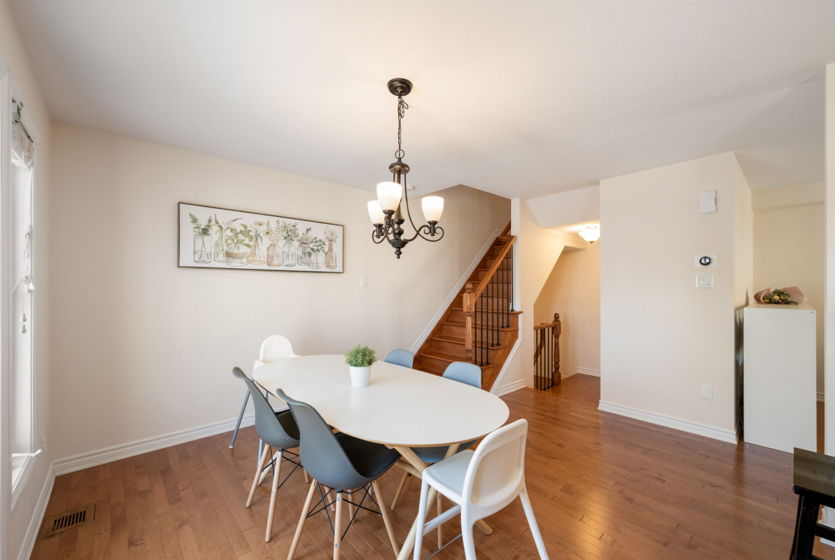 You’ll appreciate this carpet free home, with beautiful hardwood floors throughout the house (except the entry level and three bathrooms where there is tile), custom flush wooden vent covers, hardwood stairs, and upgraded railings. The kitchen has granite countertops and stainless steel appliances. This layout is exceptional, with separate areas for the dining and living rooms, which is not common in a 2 bedroom executive townhome.