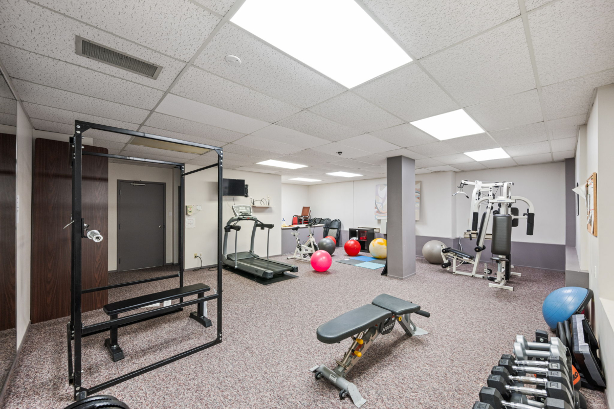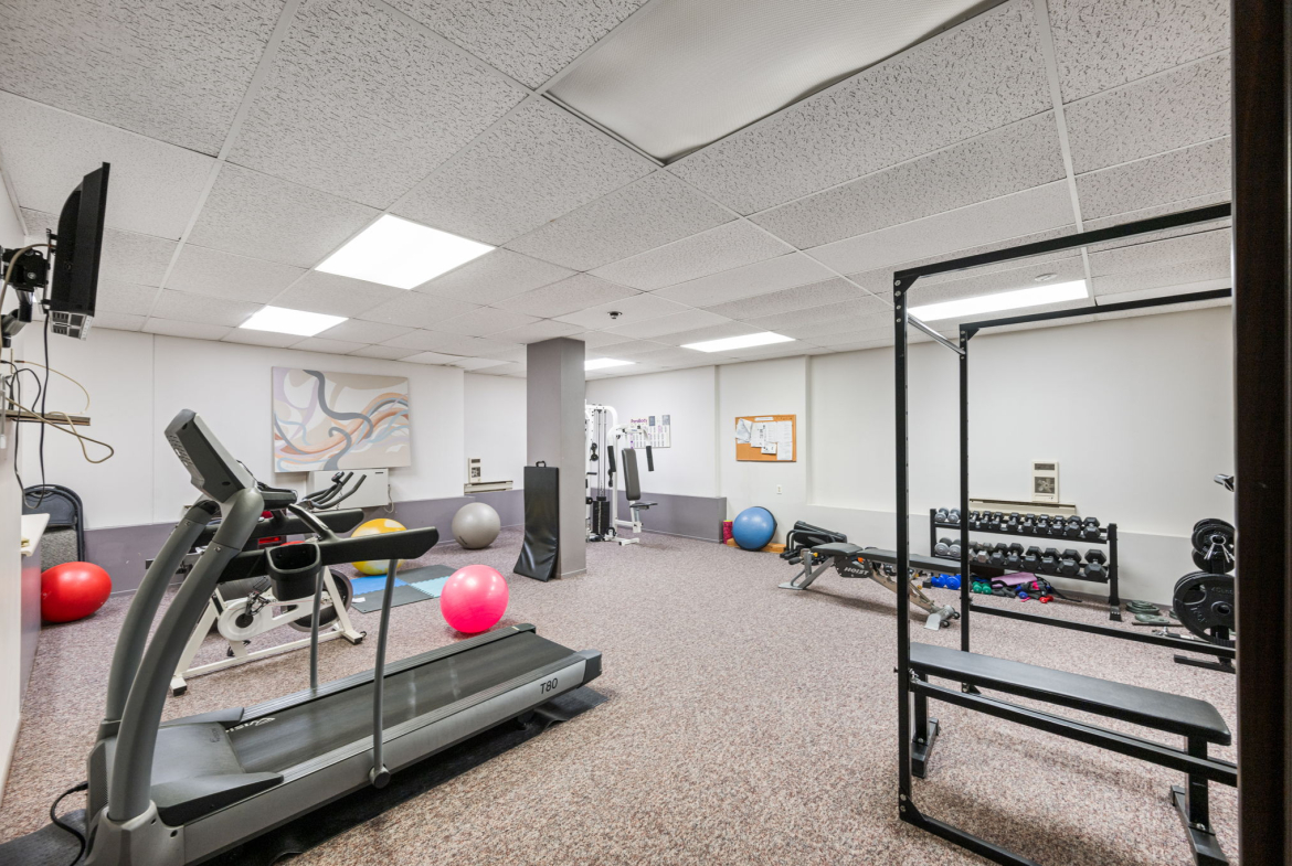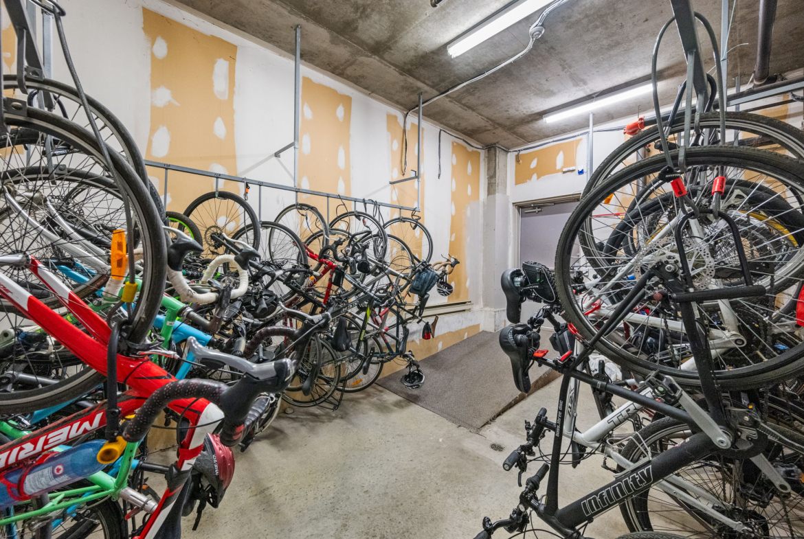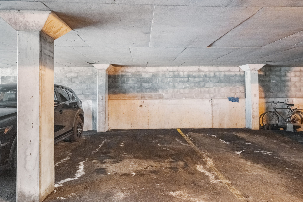 Within the building, you can enjoy the rooftop patio (accessible off the 4th level), a good sized gym (main floor), bike storage (main floor), and if you’ve got company visiting, you can book a visitor suite. If you need more storage, the building also has extra storage lockers available for rent. The owned parking spot (#124) is one of the best, being right off the lobby level. Laundry is just off the lobby as well.