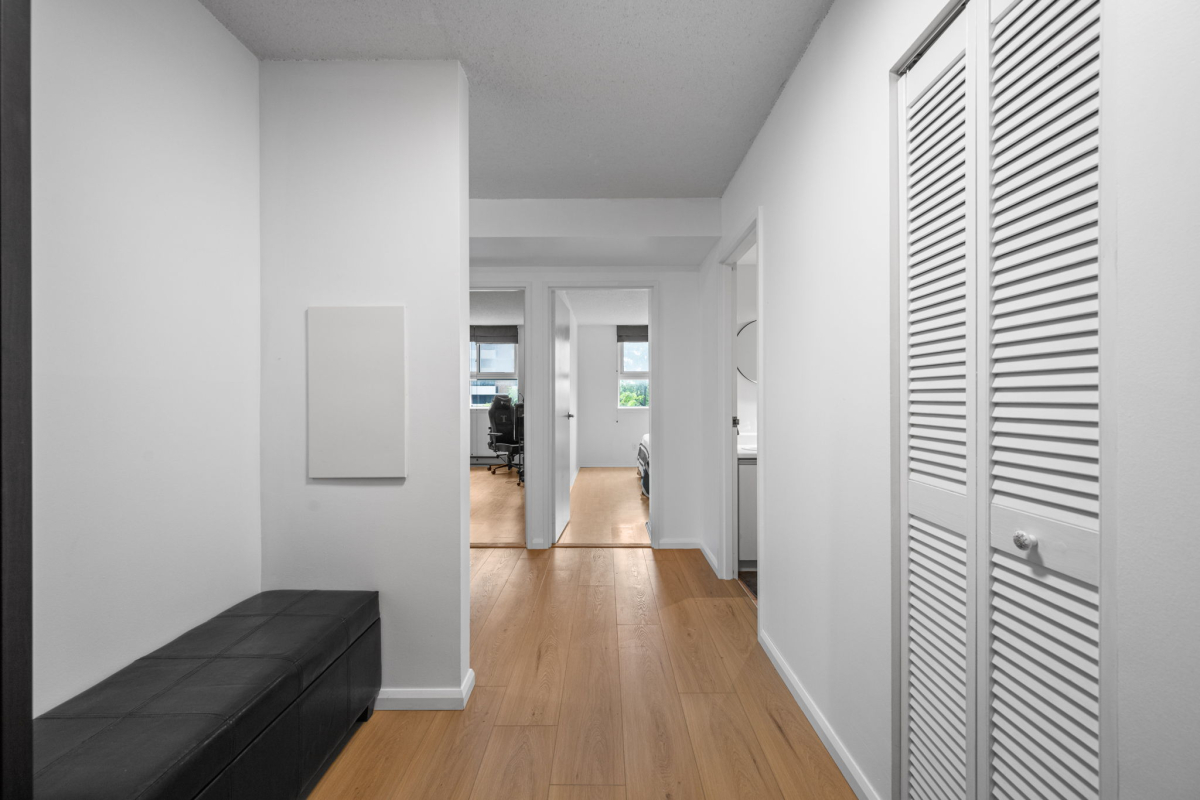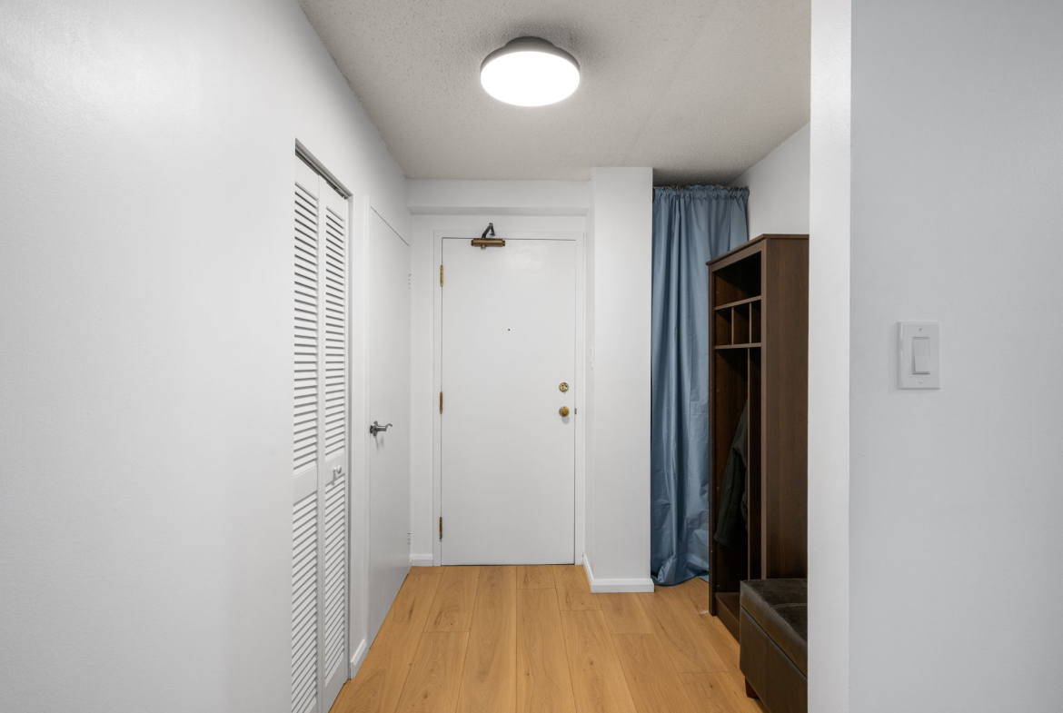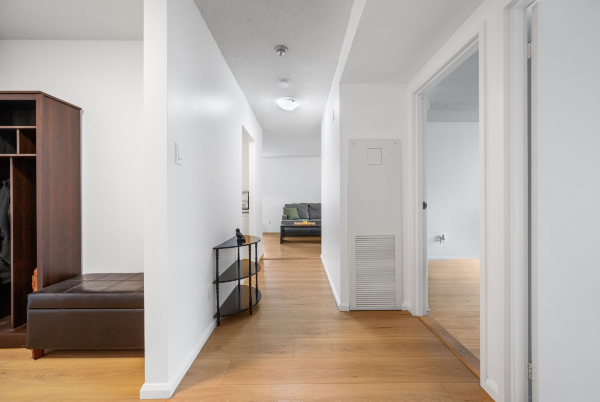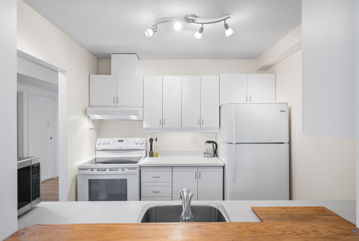 Within the building, you can enjoy the rooftop patio (accessible off the 4th level), a good sized gym (main floor), bike storage (main floor), and if you’ve got company visiting, you can book a visitor suite. If you need more storage, the building also has extra storage lockers available for rent. The owned parking spot (#124) is one of the best, being right off the lobby level. Laundry is just off the lobby as well.