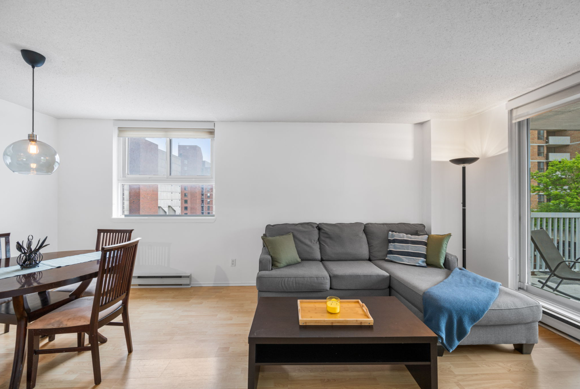 This nearly 900sqft corner unit has North and East balcony views toward the Ottawa river and overlooking the building’s rooftop patio. Inside, you’ll find two good sized bedrooms, a good sized living and dining room, and a functional kitchen. Don’t forget the 4 piece bathroom and an in-unit storage room. 501-110 Forward Ave is worth checking out!